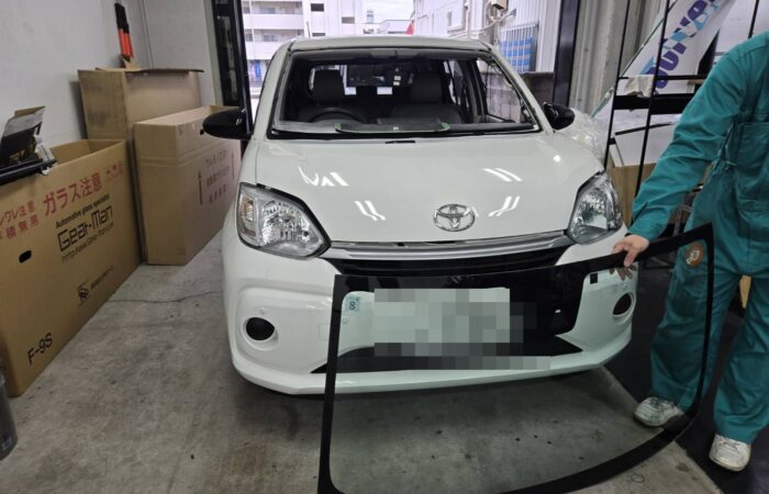 お客様から、トヨタ パッソ フロントガラス交換のご依頼をいただきました。ありがとうございます。