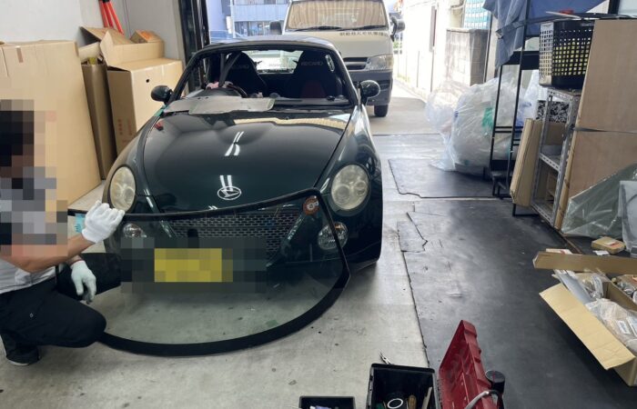 お客様から、ダイハツ コペン フロントガラス交換のご依頼をいただきました。ありがとうございます。