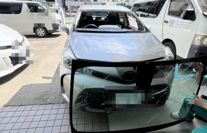 お客様から、トヨタ プリウスα フロントガラス交換のご依頼をいただきました。ありがとうございます。