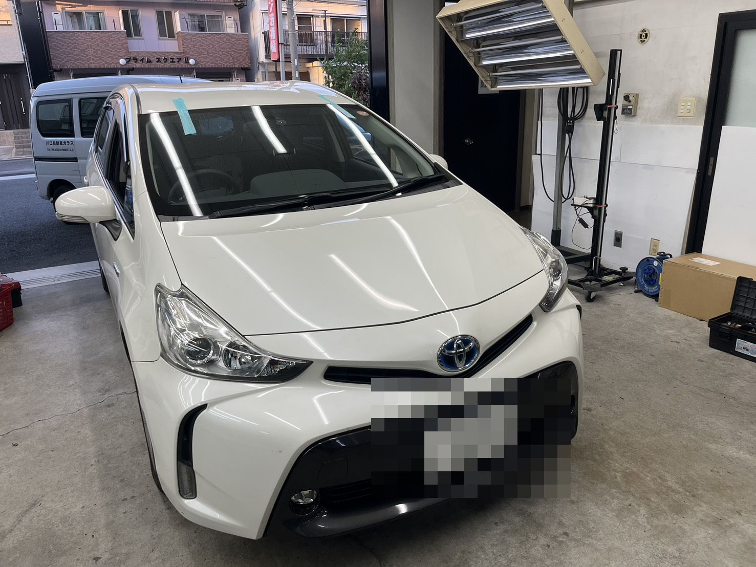 お客様から、トヨタ プリウスα フロントガラス交換のご依頼をいただきました。ありがとうございます。