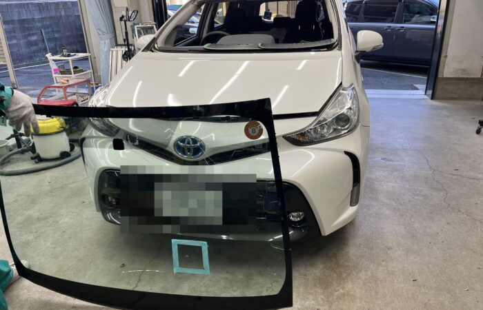 お客様から、トヨタ プリウスα フロントガラス交換のご依頼をいただきました。ありがとうございます。