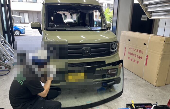 お客様から、ホンダ N-VAN フロントガラス交換のご依頼をいただきました。ありがとうございます。