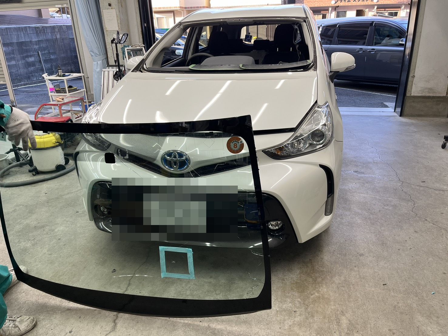 フロントガラスが割れたまま